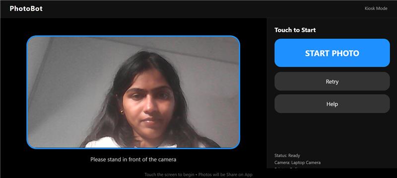Users can easily begin their photo session with one tap. The system guides them through capturing high-quality photos in kiosk mode.
