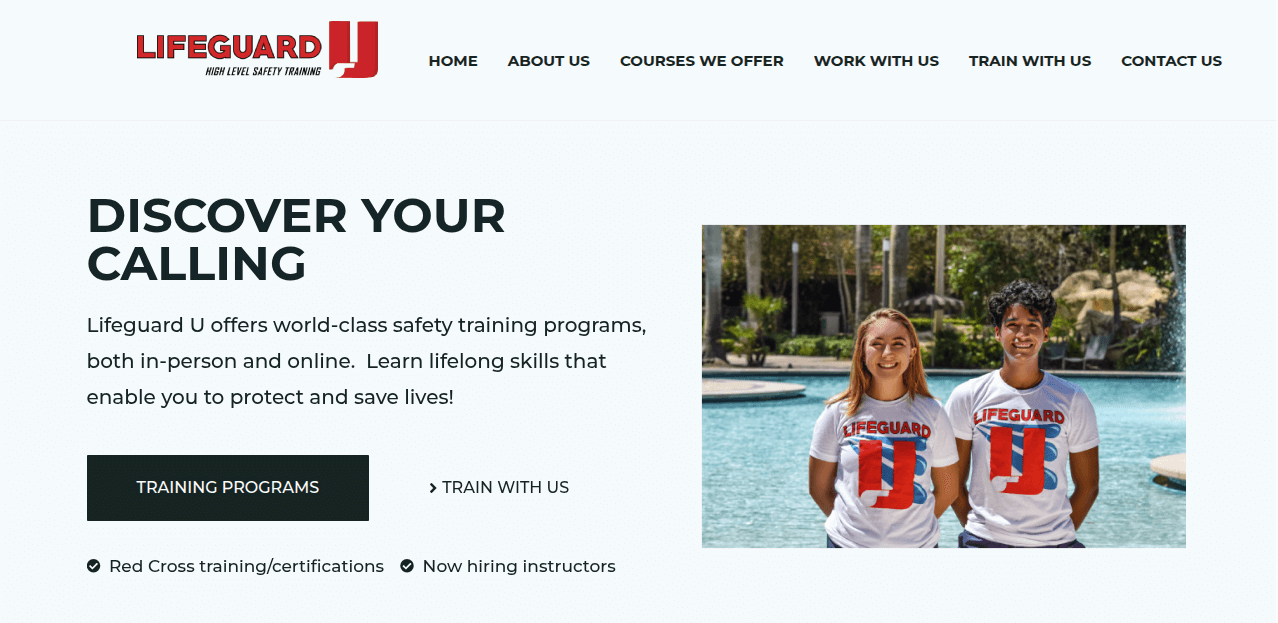 A clean, user-friendly website built for Lifeguard U to promote their safety training and certification programs. It features course details, online registration, and clear CTAs for easy enrollment.