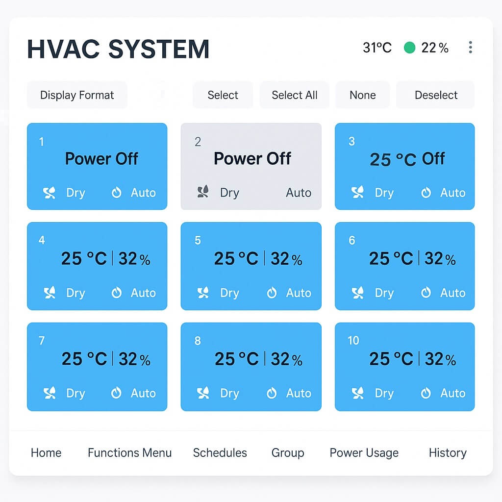 - Real-Time Monitoring & Control: Our smart HVAC system comes with a graphical display and web-based interface, allowing users to monitor and manage their home or commercial environment in real-time. Whether you are adjusting a home climate control system remotely or checking building-wide HVAC performance, our system provides instant insights and control for complete comfort management.