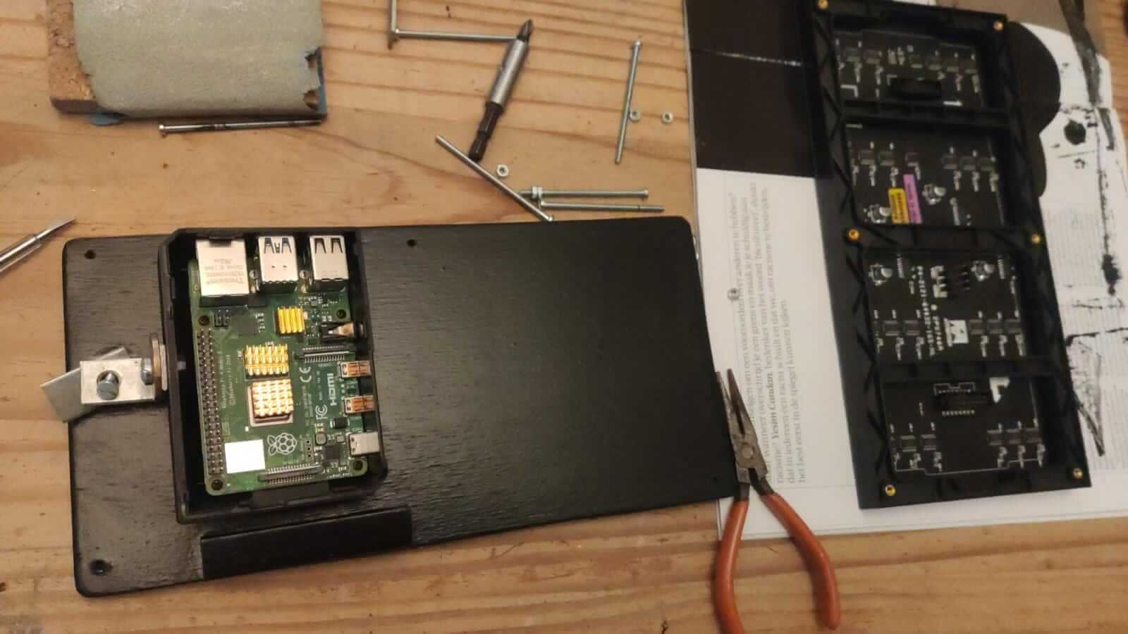 After doing deep research, our team of experts came up with a list of components required for this job. We chose an Adafruit-based LED Matrix because itβs bright and easy to set up. For the microcontroller, we used a Raspberry Pi, and our web experts developed APIs that provide real-time data.